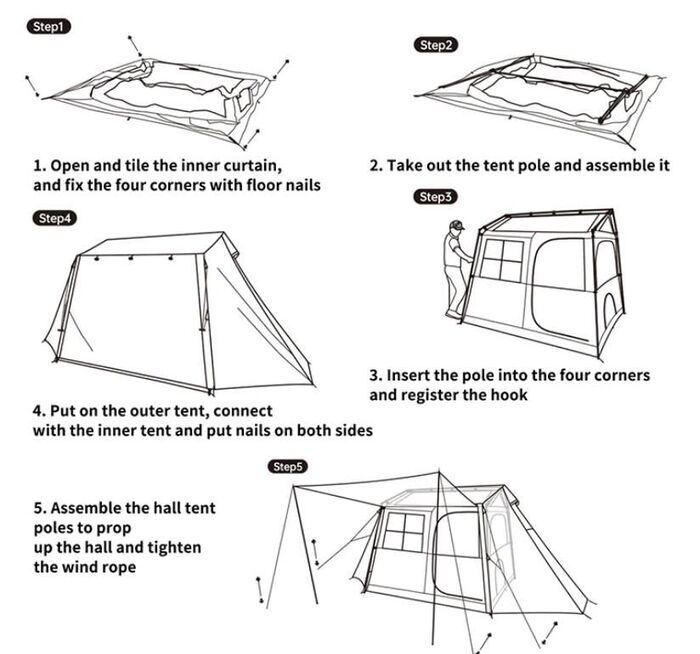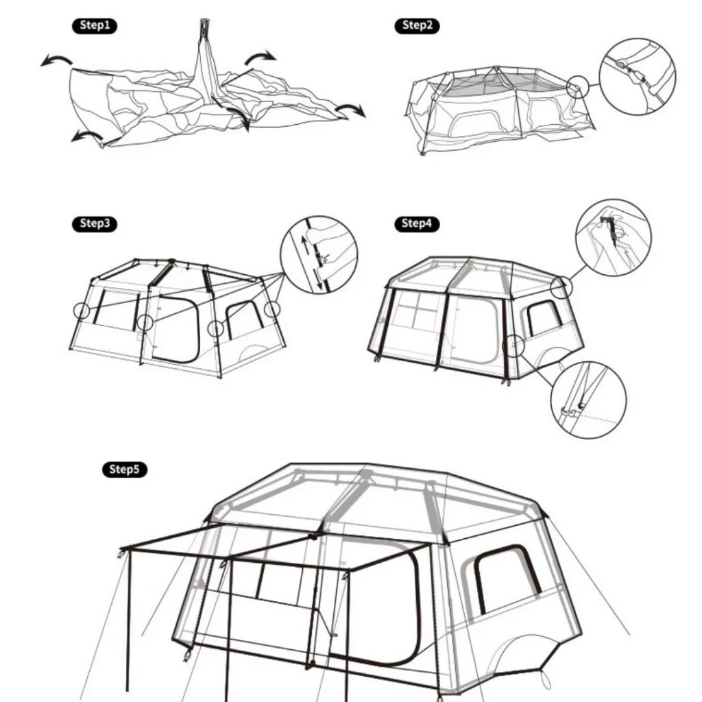 We offer two models tailored for different needs. The Village 13 is a spacious tent designed for large families, youth groups, or friends traveling together. The tent is most comfortable for 6–8 campers, giving everyone ample space for sleeping and storage. Its multiple mesh windows allow maximum airflow, while its double-layer construction keeps the interior cool under the sun and dry during heavy rains. With standing height clearance and a sturdy frame, the Village 13 makes even large gatherings feel at home in the wilderness.