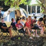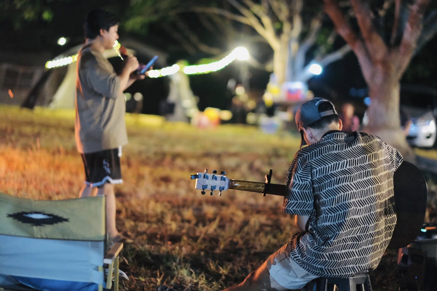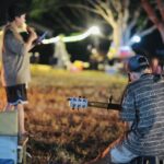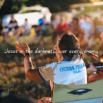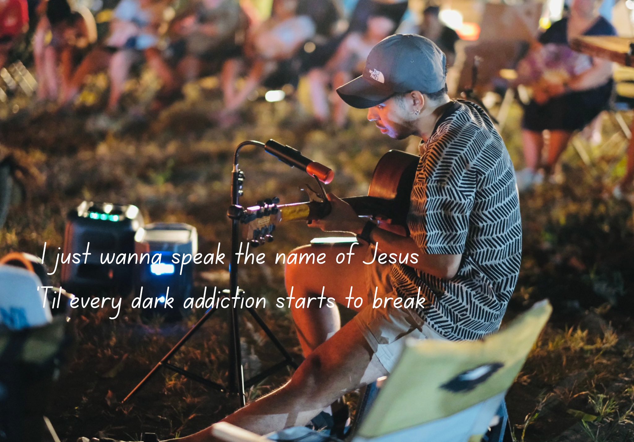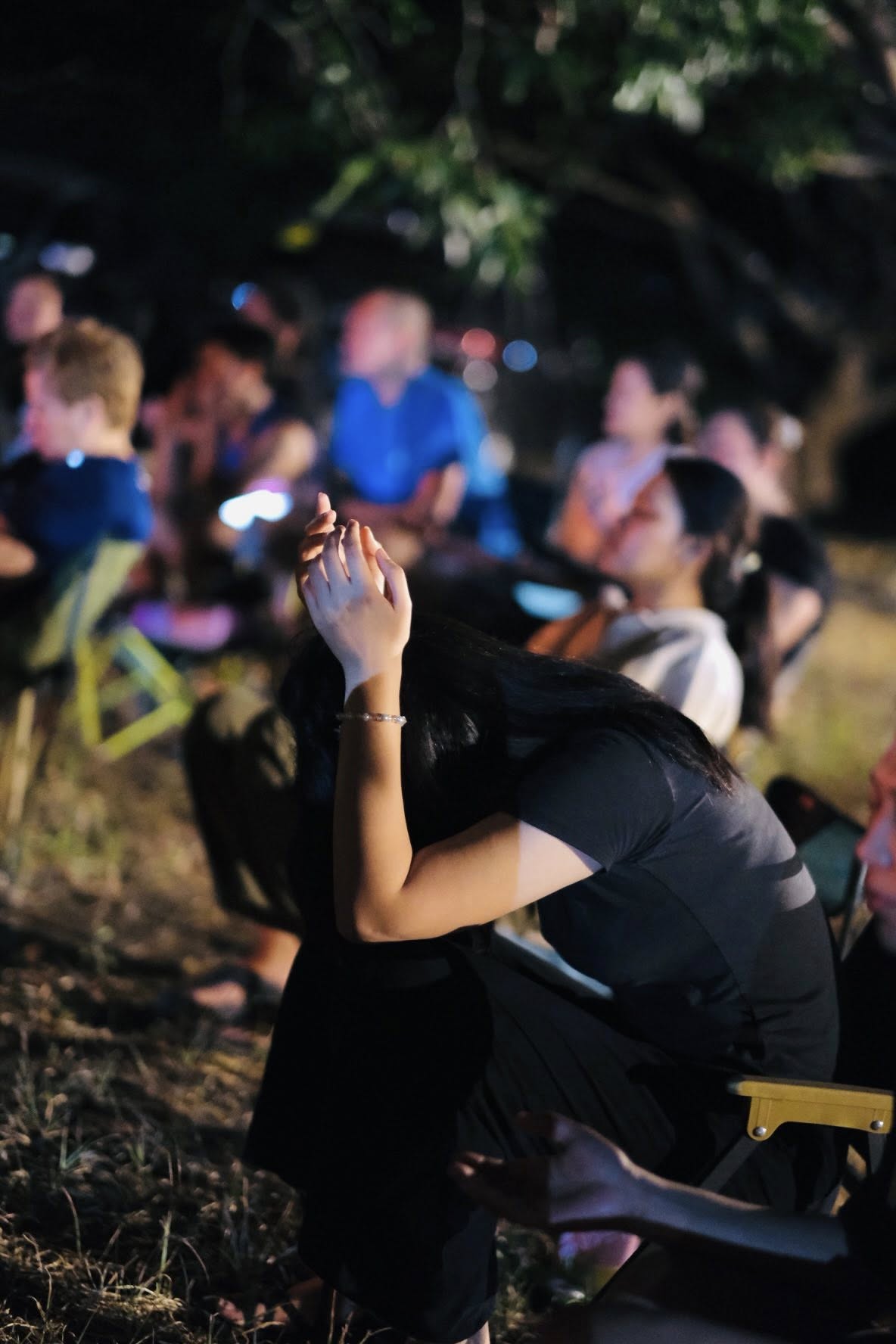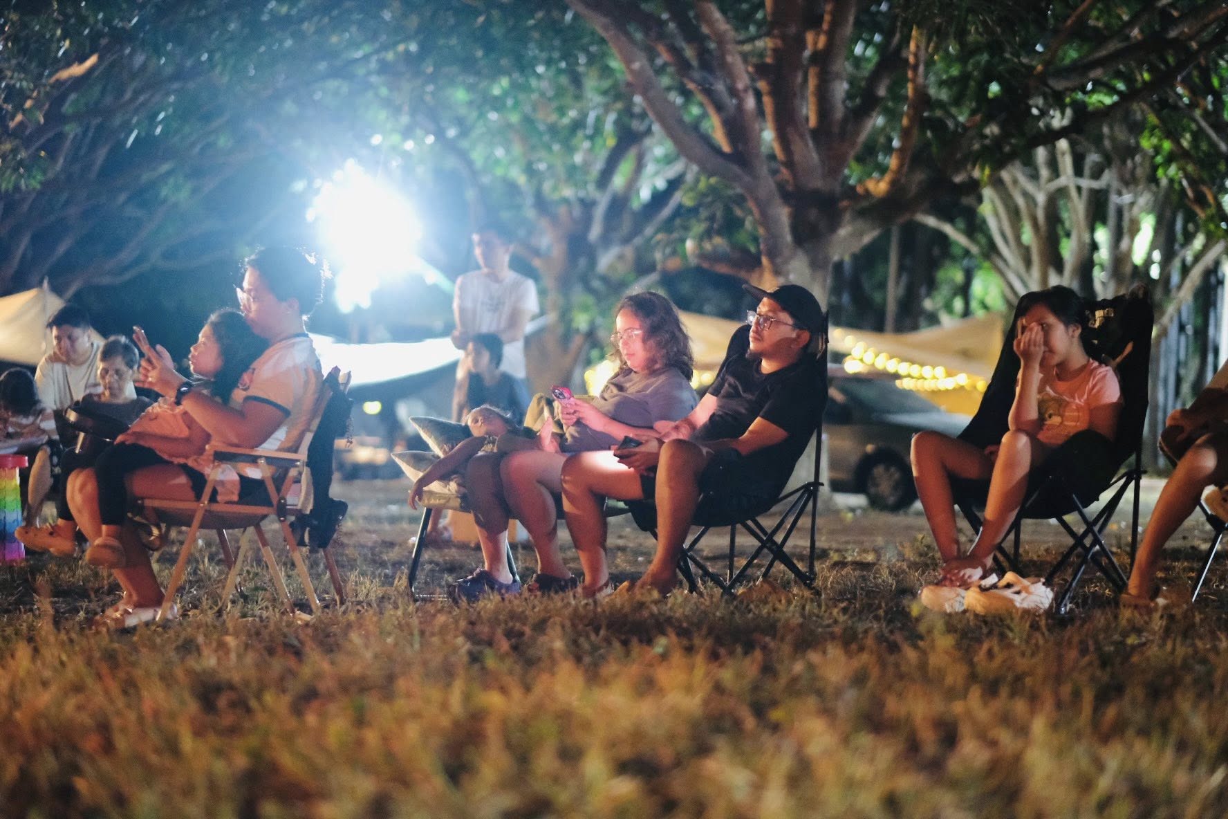The setting invites all ages — children with wide eyes listening to songs, youth declaring their faith boldly, and adults rediscovering peace in the simplicity of worship outdoors. Each spark that rises to the sky seems to carry prayers upward, and each song echoes across the trees as if creation itself joins in the chorus.